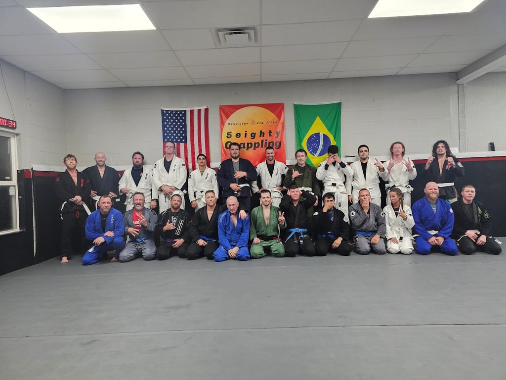 “I began training jiu jitsu at 5eighty in July, 2021 and haven’t looked back since. Great atmosphere where it’s easy to learn and grow together. Professor Aaron is top notch and is passionate about spreading his vast knowledge. Solid rolls with training partners who leave their egos at the door.”