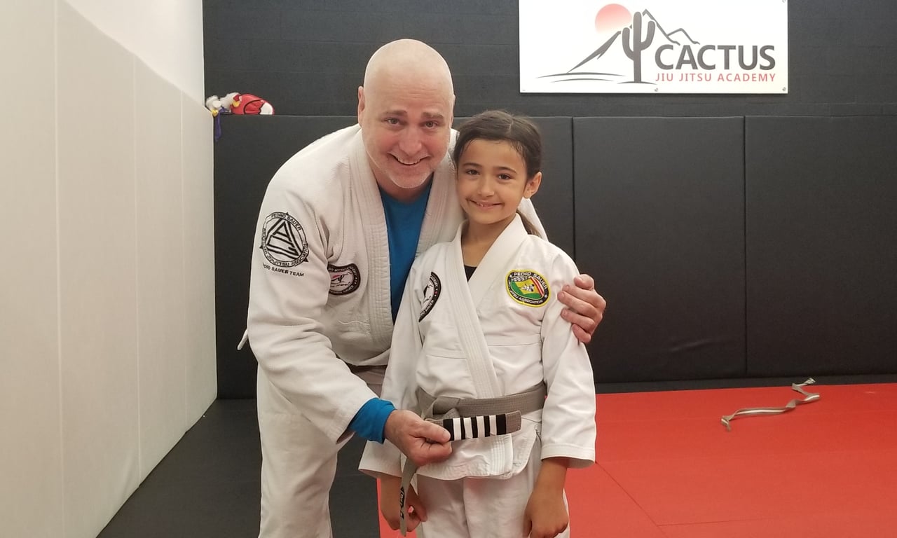 “I’m not exaggerating if I say that Cactus Jiu Jitsu has changed the trajectory of our kids lives. Not only have our daughters learned a new self defense skill, but they are more confident in themselves and more connected to their bodies since starting Jiu Jitsu. Coach Ed and the entire Cactus Jiu Jitsu team made us feel welcomed and a part of the family from day one. Everyone was so patient and compassionate when our daughter was feeling anxious getting started and they continue to encourage and motive the kids to be better, mentally and physically. If you are looking for that jiu jitsu gym with a friendly family feel, for your kids or yourself, then you will love it here.”