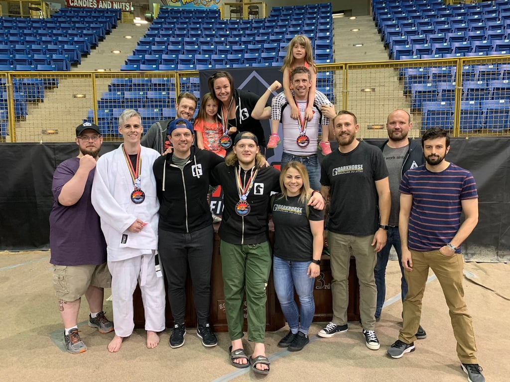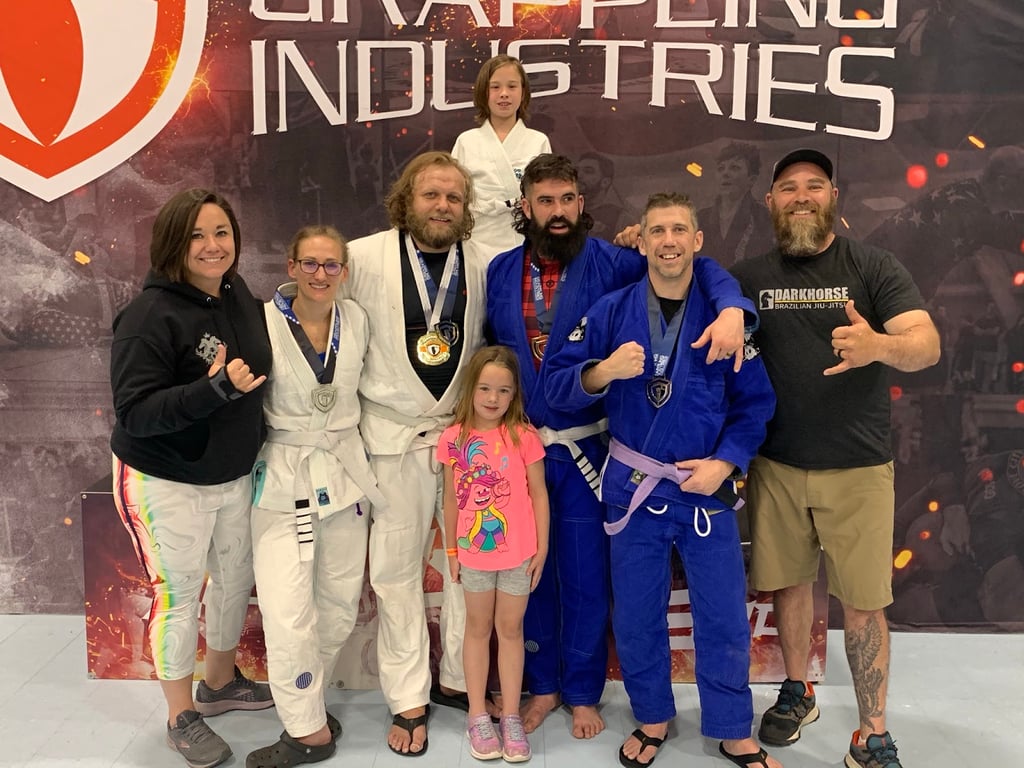 “Never thought I would like Jiu Jitsu. Didn’t wrestle in school. Close to middle aged, overweight, and out of shape. Needed something active during/after Covid. Decided to try Darkhorse and so thankful I did. This place is like a family. They support you in your goals and everyone is supportive when you first start and feel all awkward. There is no pressure to compete but there are coaches to support you if you want to compete. If this was an ultra competitive “gym” it wouldn’t be right for me, but I absolutely love this place (3 days a week, for 6 months now, trying to get healthy and learn some skills along the way are my goals).”