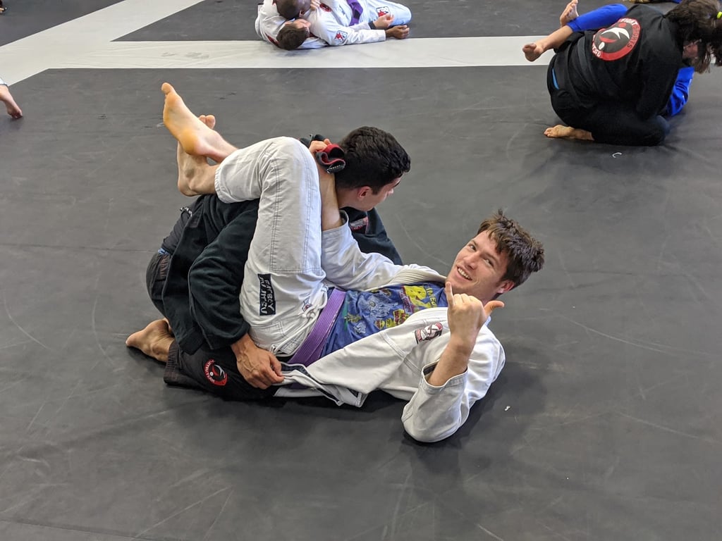 “I train at 6:30am and the classes are huge for this hour. I have way more options for training partners here than I've had anywhere else. The people I train with are kind, friendly, and focused on improvement. There are a lot of black belts on the mat. They are friendly and approachable. I've trained at gyms that have a snobby black belt culture- that isn't the case here. They want to help you. You'll make friends quickly at Fight Sports. My coach, Rodrigo, is an excellent competitor and instructor. His instruction is detailed, easy to understand, and his lessons offer something for every level of student. You can tell he loves Jiu Jitsu. He makes class fun & challenging. Some amenities I appreciate: There's a shower. There are locker rooms. There's a fully stocked cafe🤘🏻. There's a weight room with a strength and conditioning coach & multiple classes per day. The mats are HUGE. Come train with us. ☕ ⚔️”