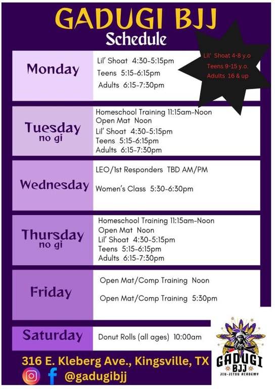 “Gadugi BJJ is home away from home! My kids love going to class and they've learned so much, both jiu jitsu and life skills. I appreciate the supportive and family-centered environment. They have a lounge/homeschool area in the back where the kids can be during adult class. I recommend Gadugi BJJ for all families, beginners, and seasoned athletes alike! Hershel's skills and instruction are the best around!!”