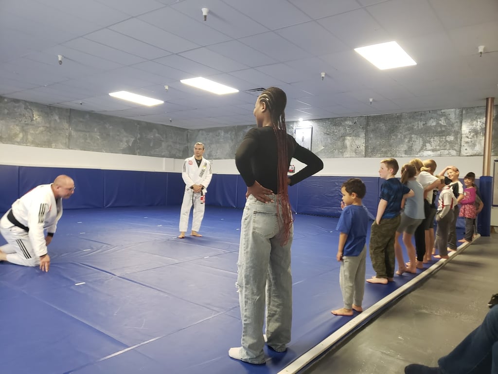 “I was kind of shocked at how a free class went here. The building itself looked like it was maybe condemned? Their open sign doesn’t work either so it was kind of hard to tell if they were even open. They gave my son a dirty gui to wear during class that you could tell had seen better days. The seating is a bit of a nightmare and unlike other gyms like this we’ve been to, it’s so loud! Non stop talking and socializing while the kids practice. It’s overstimulating and frustrating. The bathrooms are in rough shape, hence the duct tape on the floor. Nobody introduced themselves or made my kid feel included in anything. He was happy not to go back. It was even more obvious that they didn’t really know what was going on when they called me a few weeks later to sign him up for his free class. They were none the wiser we had already come and gone. There’s a ton of room for improvement.”