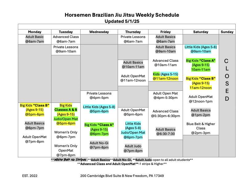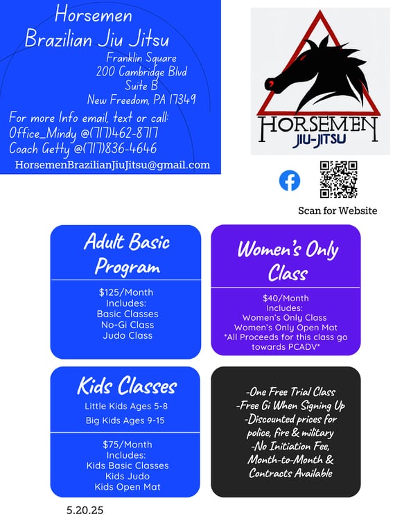 “⭐⭐⭐⭐⭐ I can't say enough about our experience at Horsemen. From the day we joined, we felt welcomed and part of a wonderful community. All of them are not only an incredible instructors but also fantastic role models. Their passion for jiu jitsu and commitment to each student truly shines through in every class. The positive atmosphere, supportive environment, and emphasis on respect and discipline have made a significant impact on our kids. We are so grateful to have found this amazing school and highly recommend to anyone looking to start their jiu jitsu journey 🥋❤️”