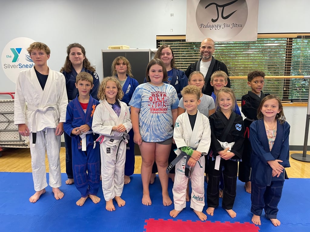 “I highly recommend Pedagogy Jiu Jitsu with Coach G! Our kids haven’t ever participated in organized sports, so I was eager to have them join something active. I sat in on a session when they were trying it out and was excited to see how many boxes were checked. The kids have to engage both their bodies and brains to learn the various techniques. The exercises are excellent for strengthening their bodies, but the tumbling action and exercises are amazing for their brains as well! Coach G is passionate, competent, and has experience in instruction, so he is able to provide a superb environment for learning these skills.”