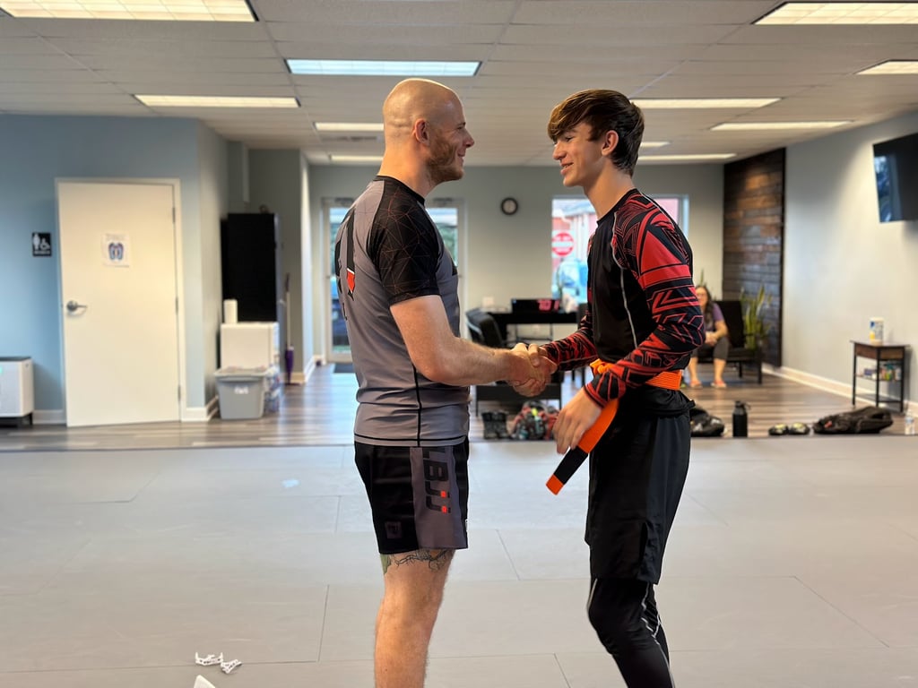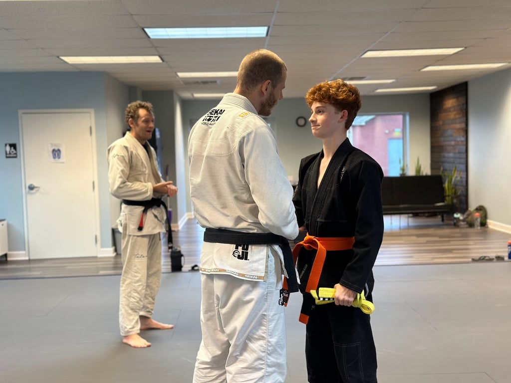 “I knew this gym had a decent bit of girls, so I was pretty excited when I got the chance to visit. Everyone is amazing, Mark is so welcoming, and the gym has a decent amount of black and brown belts with so much knowledge to give (shout out to Will, who keeps finding new ways to use my own Gi against me). Their kids' program is flourishing, and the teenagers are some of the most humble, respectful teens I have ever met. All around great school and if you're looking for womens only or a good kids program, this is 10/10 the place.”