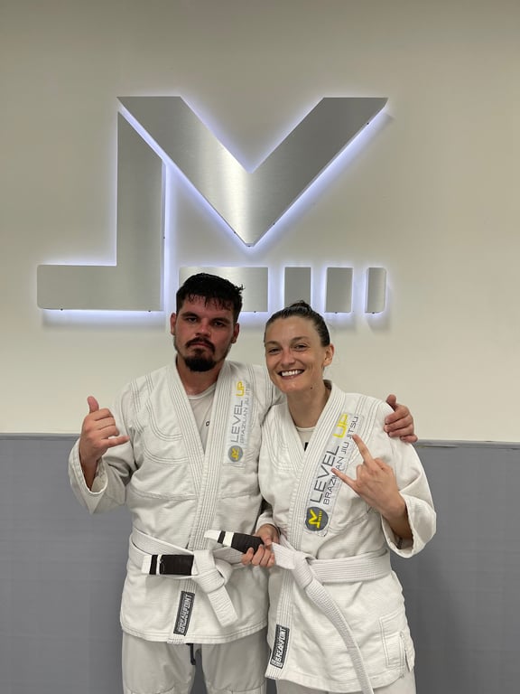 “I love this school and jiujitsu changed my life!! I am 30 yo woman who had never had any interest in any type of sport. Organized sports have never been my thing. My boyfriend tried out this gym once and made me come with him the next time to try it, because he swore I would love it and he was absolutely right. We started in fundamentals with Coach Will and he's the absolute best. So patient and adjusts how he's coaching to who he is coaching, which is so important. My boyfriend loves all sports and loves to be pushed, I need space to figure things out while being "encouraged" if you will, not yelled at. Had I not gotten that when I started, I would have been turned off from the sport immediately, because like I said, I am not an organized sport kinda gal. (Lol) Now I mostly train with our Black Belt, Professor Makoto, he is also extremely patient, knowledgeable and a complete beast. With multiple golds this year alone, so it's nice to be learning from the best in such a supportive environment. Honestly, I can't rave enough about level up, all the coaches I've worked with are awesome, Alex, Donovan and the Professor Erik. They all have different styles and are there to help you find yours.”