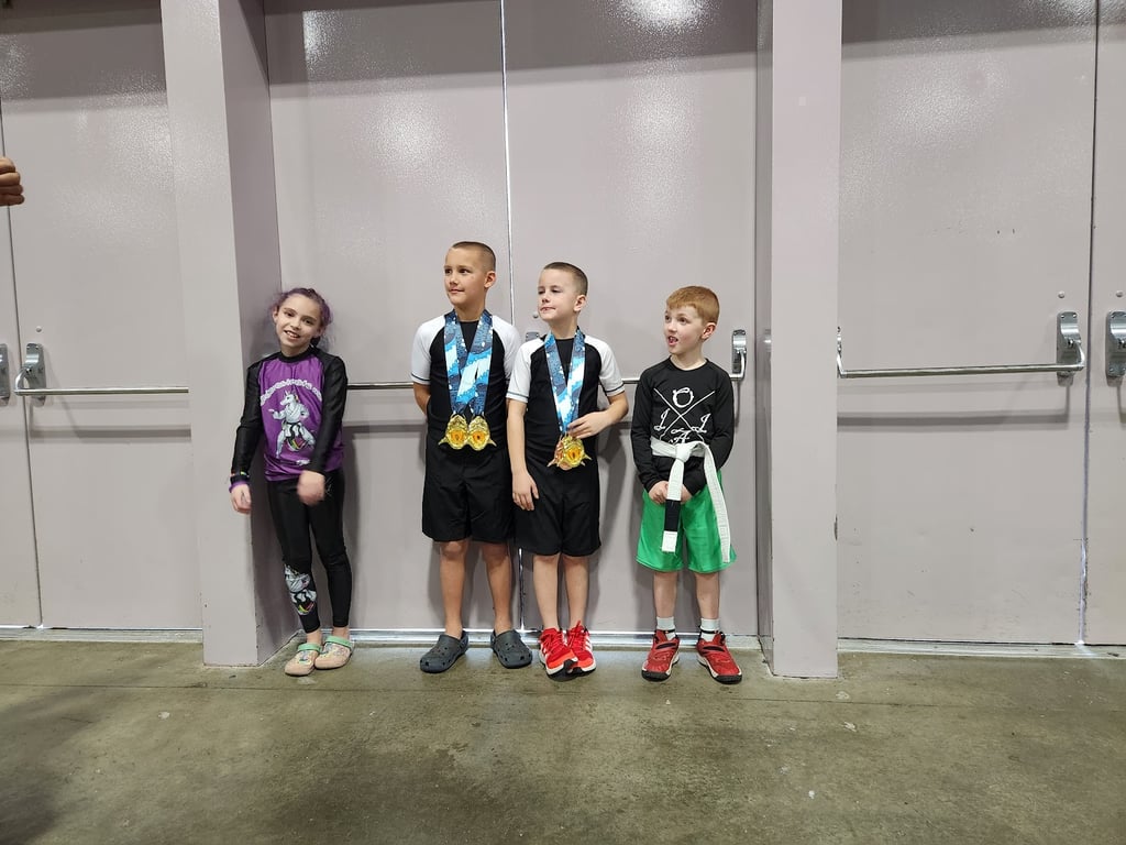 “Our boys started BJJ with Coach Ben & Coach Heather in April of this year, after observing a class for 5 minutes. They have been hooked ever since. They look forward to going to class each time, and it has become a priority in their schedules. In 7 months, our boys have learned an overwhelming amount of jiu jitsu techniques, moves, and holds, along with some self-defense. They have learned the art of discipline that comes along with jiu jitsu and as brothers, we think jiu jitsu has helped them bond and get along better at home. Coach Ben is an all around amazing man. The way he interacts with the kids, disciplines them if need be, and encourages them constantly, is something every kid needs to experience. He has a way with words, a nice calm tone, and best of all, he believes in each and every one of them, and lets them know it. Coach Heather is wonderful as well, full of spunk, encouraging, helpful, and likes to have fun. She makes you feel as if you’ve known her your whole life and that you truly are part of the OJJA Delhi Jiu Jitsu family. Thanks to them, our boys just had their very first BJJ competition, and it was a very successful one at that. We look forward to a long relationship with OJJA-Delhi and seeing the growing strength, knowledge, discipline, and confidence they are instilling in our boys. We highly recommend this facility and coaches to everyone!”