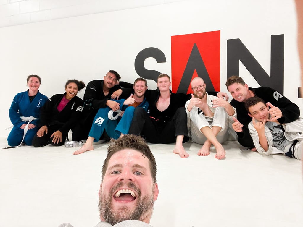 “I began training at Sanity about 1.5 years ago after my son who already trained the year prior begged me to go so we could have a jiu jitsu family! Best decision ever. It is such a great, family friendly environment with the best coaches and the best team! 20 months into this journey, and I can’t imagine ever stopping!”