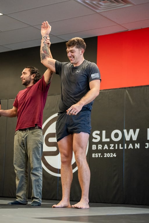“Coach Travis has successfully created a welcoming & safe environment at Slow Roll BJJ, for newcomers and seasoned practitioners. His style of teaching and coaching is beneficial to anyone and everyone who wants to grow with the sport. Whether you're looking to join for health, fitness, or competition, this is the place to be. You won't feel like an outsider here. All of the coaches and members are so helpful in answering questions and helping you better yourself in your jiu jitsu journey.”