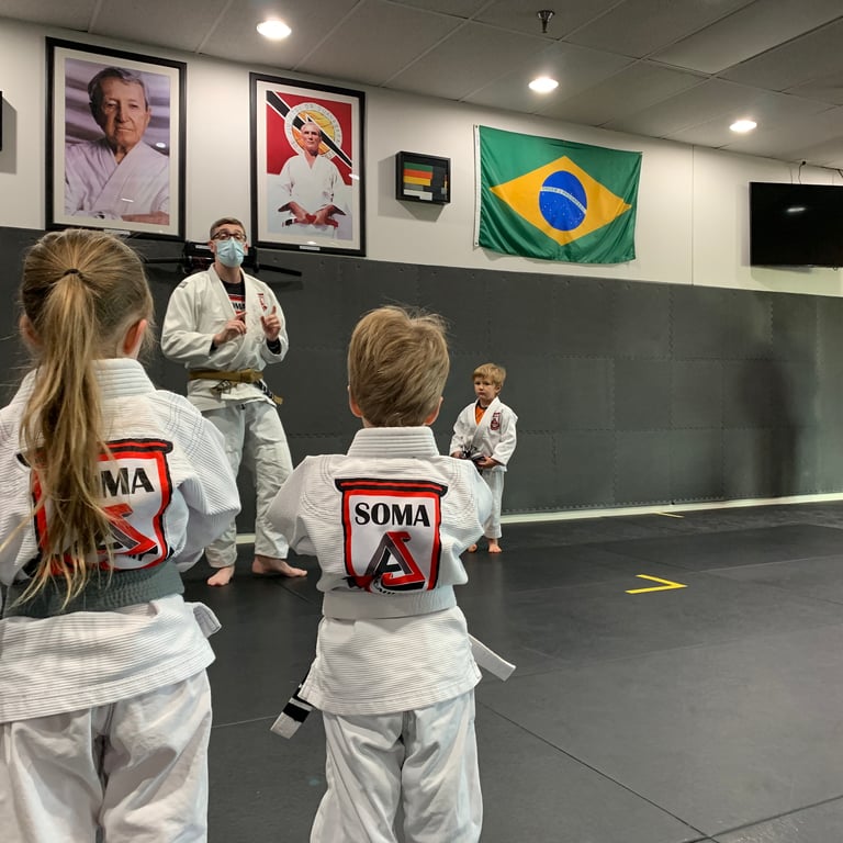 “Highly recommend! My husband and I are from BRASIL and we were looking for a BR Jiu Jitsu class to enroll our 5 year old son. This was the first group activity our son was going to try and we didn’t know how he would engage or react to it. We are so happy we found SOMA Jiu Jitsu. The instructor, Garret, and his assistant are incredible with kids. From the first class our son left SOMA loving it. The classes are very engaging, filled with techniques but at the same time fun. And I love the fact that they are twice a week. After only three weeks at SOMA, our little one is loving it and jiu jitsu days are his favorites of the week. Ps: there is a very cool Indian grocery store next door and two Mexican restaurants at the same mall complex. Very convenient for getting some treats after the JJ class or take out dinner for busy days at home.”