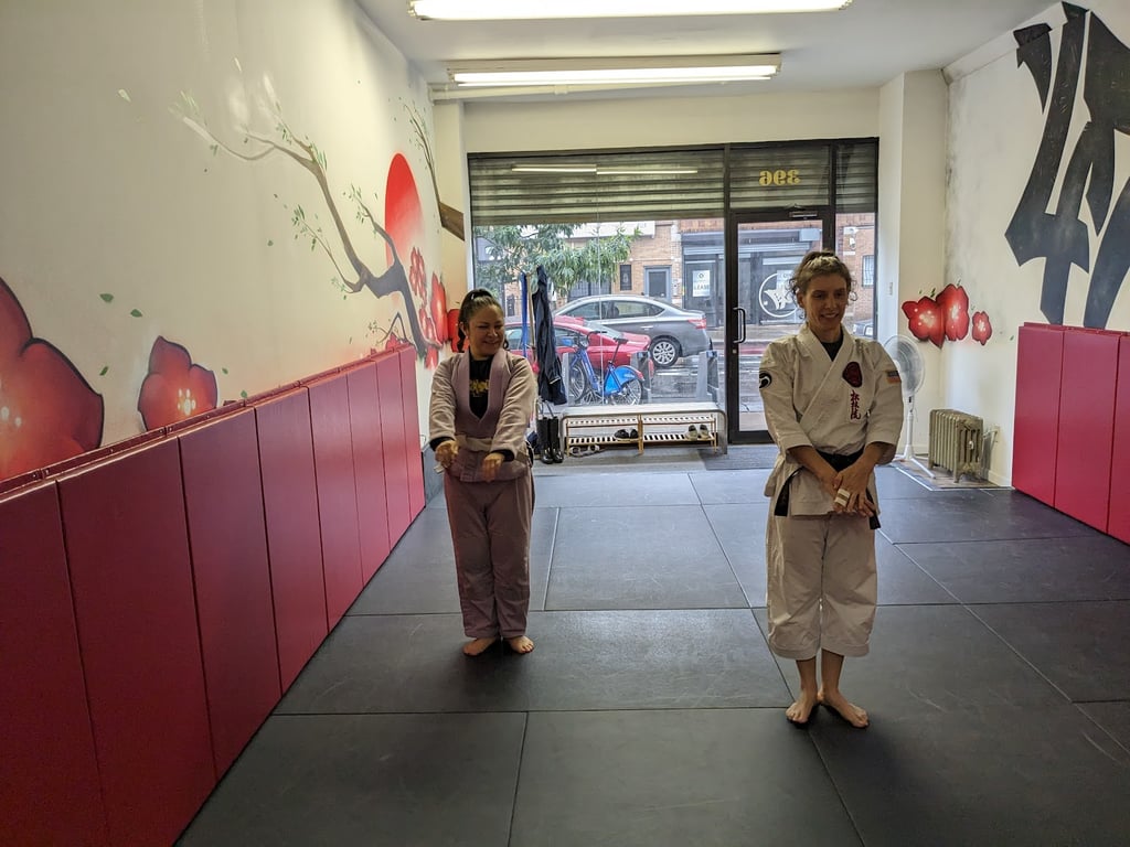 “As a small woman, it was intimidating to take the initial step of going to the school. I didn't have any combat sports training and was not sure if I was going to be a good fit. I felt welcomed from the moment I stepped in. The community is very diverse, welcoming, and down to earth. The atmosphere is always safe and chill; everyone is respectful and supportive. The school is always clean, close to public transportation, and it also offers 7am morning classes! Anna is the karate instructor who holds a black belt in Shorin Ryu Karate. The karate classes are well structured. Anna goes into detail to explain moves and reasoning behind her instructions/movements. I highly recommend her karate classes to anyone who wants to start their martial arts training with an instructor who goes above and beyond to engage her students. Damoon is the jiujitsu instructor. He is knowledgeable and passionate about the art. He is capable of breaking down a move to the most miniscule detail, emphasizing the learning experience while maintaining the highest safety standards. Both instructors take the time to know each of their students and will provide you with personalized feedback to improve your game. The classes are not only physically challenging but mentally rewarding. The membership includes all karate, vale tudo, striking, and jiujitsu classes. All classes are coed, and women are encouraged to join any of the classes. They are always more than happy to answer any inquiries, no matter how complex or basic the question is. This is the best martial arts/combat sports school in Central Brooklyn. If you're looking for an engaging and welcoming experience, then this is your place.”