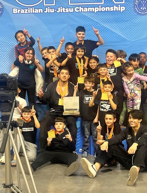 “We love the Eyrie! 6/5 stars! :) We have three little kiddos in the beginners class, and they have learned so much! They learn about listening, paying attention, being kind to their training partners and of course having FUN!! The BJJ classes at the Eyrie have helped prepare them for kinder, as those same skills are needed at school, too! It is such a welcoming and positive environment to be in. As a parent, I am able to watch and appreciate how much time and attention goes into coaching each student. We have been with Lead Instructor, Phillip Aguilar since Day 1! I remember attending the opening ceremony, and now the kids are old enough to join, woo-hoo!! It's truly a great place to be! Go Team!”