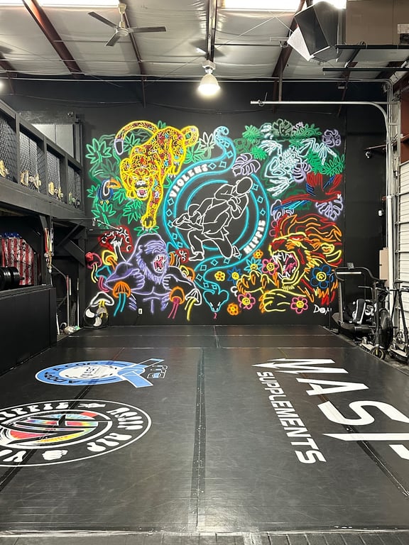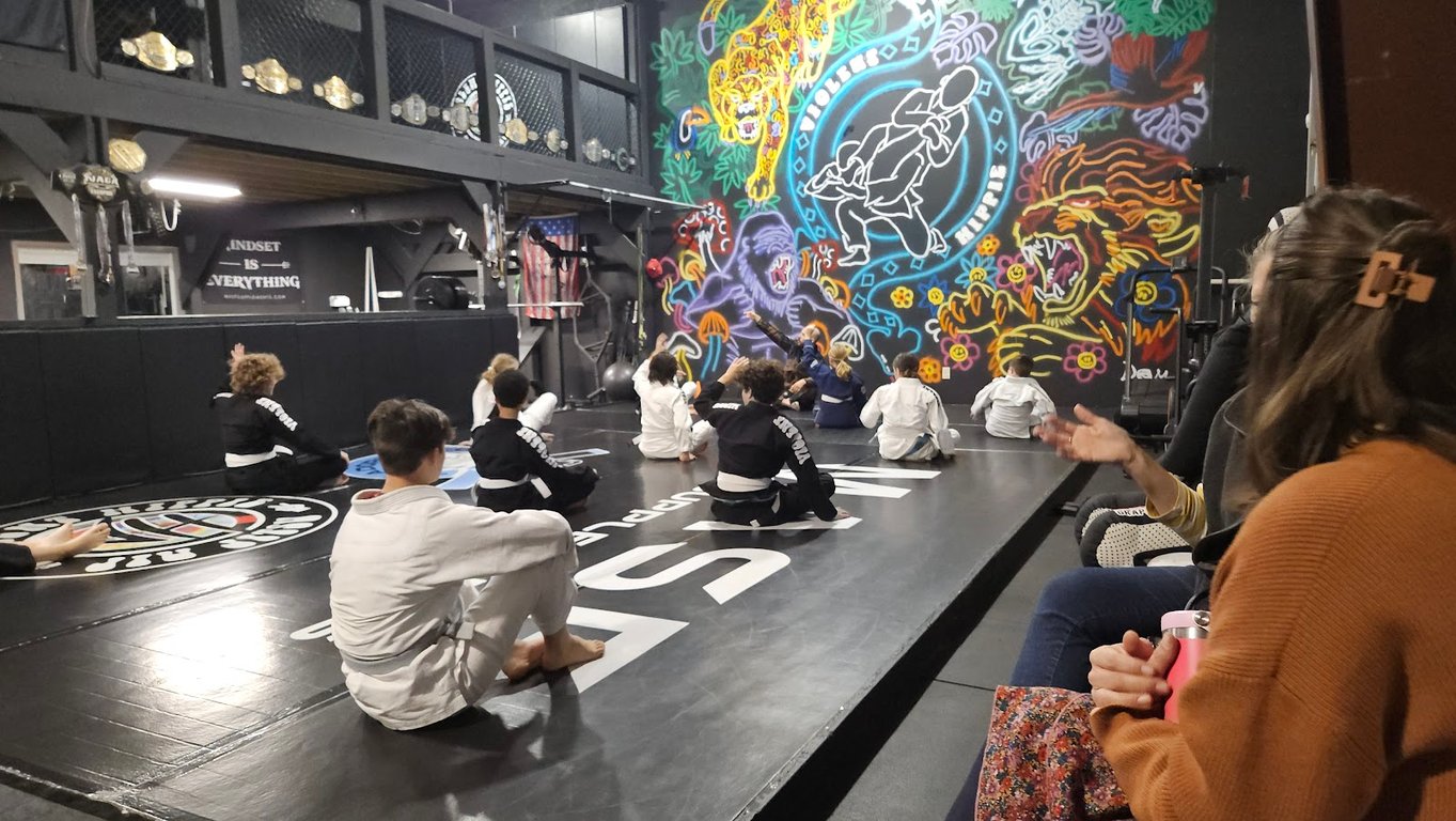 “I used to wrestle & was looking for something to help me get back into shape. I originally just thought of dropping in for the open mats & if I learned something cool. However I made the decision to join after being on the fence. I love the vibes, the members and staff, plus the name really grabbed my attention. I am very proud to be a student of professor Mitch, head coach Josh, coach Chris & coach Will (even though he's no longer there he was my first teacher when I started coming). I advertise as much as I can for the academy and will talk to anyone about it. Come join our Violent Hippie commune & learn to be kind, or else”