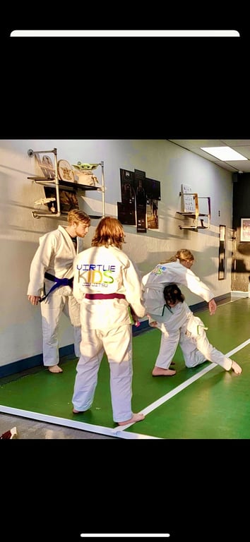 “My three children have learned so much about self control, self regulation, and critical thinking from these wonderful coaches. They are not just teaching self defense; they are offering a gift of self discovery, growth, and confidence. My children often struggle with understanding their peers or being understood by their peers - but ever since we started at Virtue, we have seen calmer, more thoughful children. I can not praise Coach Brentli and Coach Emma enough.”